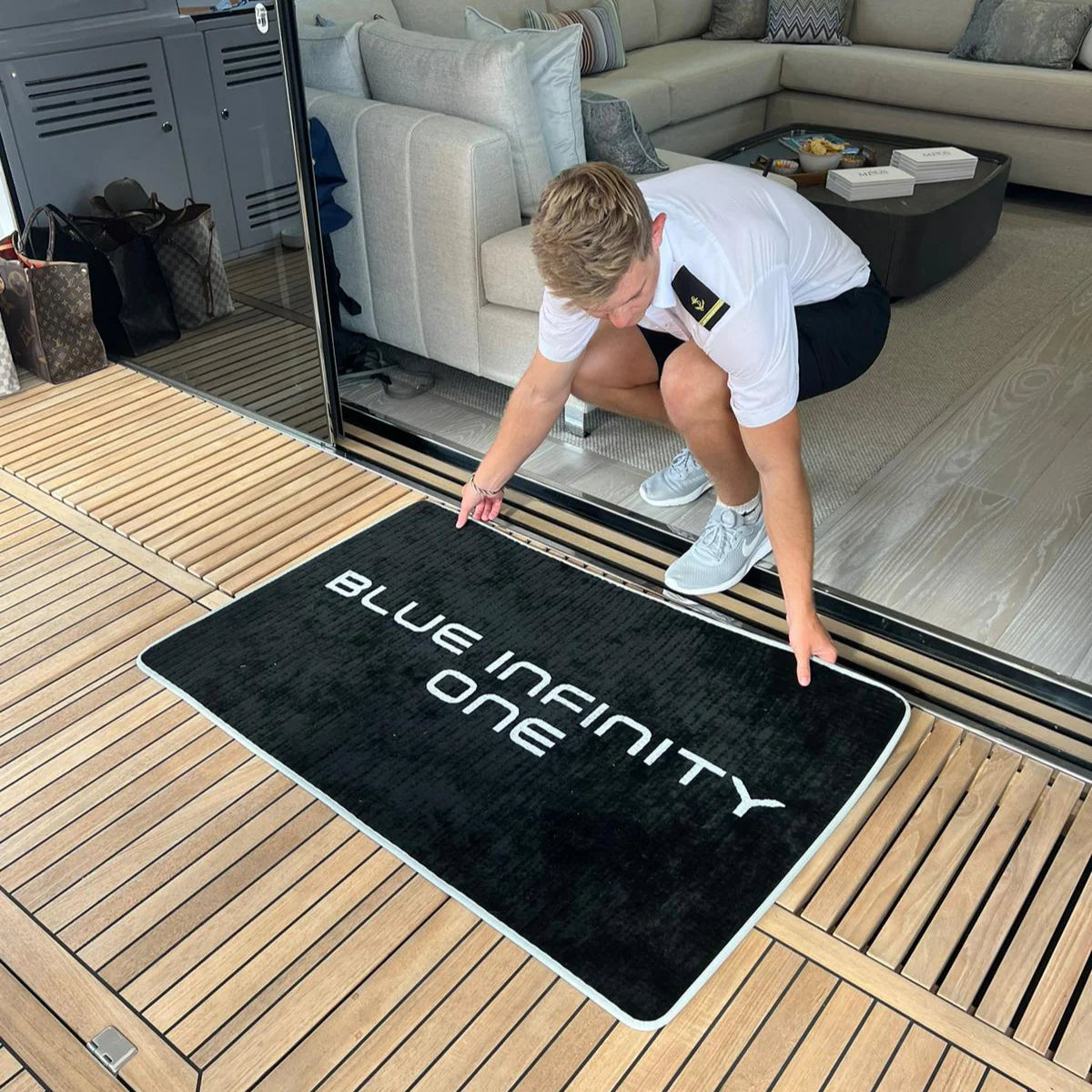 Geef je schip een persoonlijke en verzorgde uitstraling met deze scheesmat, bedrukt met je bootnaam, thuishaven of eigen tekst. Perfect voor op de steiger of aan de loopplank – stijlvol én functioneel.